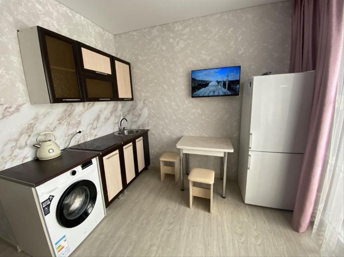 Квартира, полностью оборудована, всей необходимой мебелью и техникой: удобный диван, тумба под телевизор, обеденная зона, кух.гарнитур, холодильник, варочная панель, вытяжка, чайник, 2 больших шкафа под одежду.